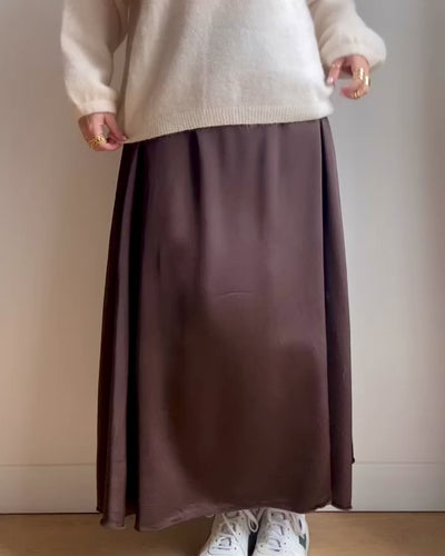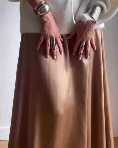 Elegant, flowing, and timeless, the Satin skirt is the perfect piece to gracefully enhance your silhouette. Its delicately flared cut hugs your curves without leaving a mark, while the discreet elastic at the back ensures absolute comfort and a natural drape.