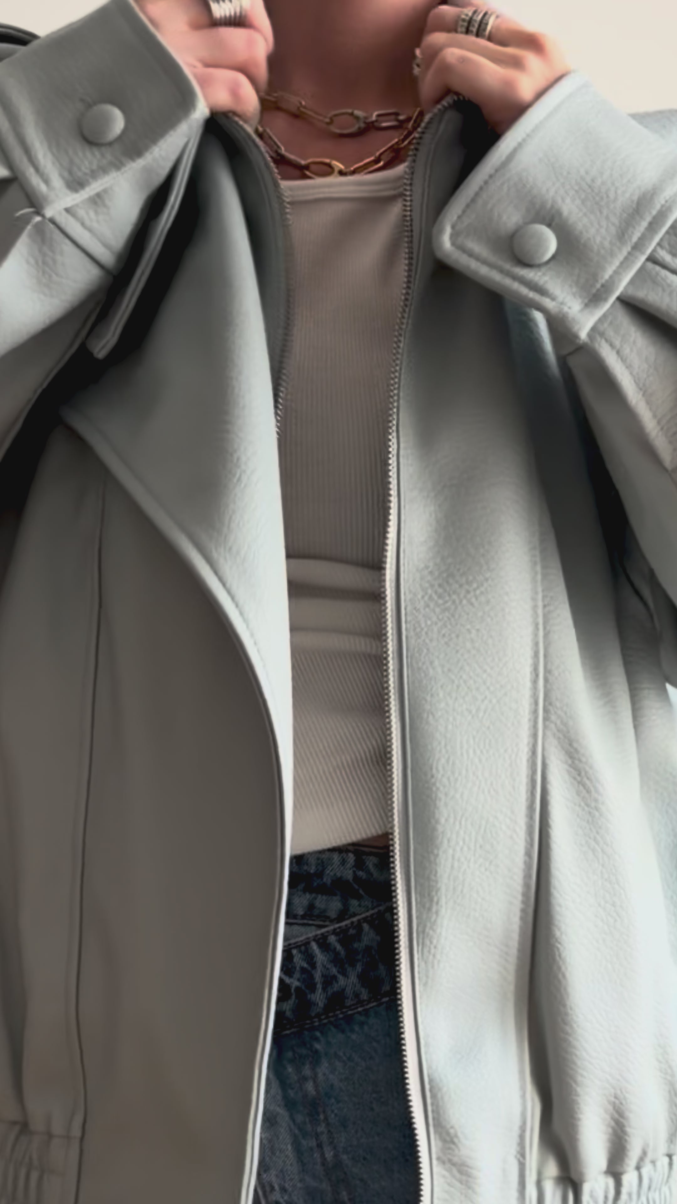 À la fois urbain et élégant, il se porte facilement au quotidien, sur un jean et des baskets pour un look décontracté, ou associé à un pantalon plus habillé pour une allure sophistiquée. Sa teinte douce et lumineuse en fait une pièce facile à intégrer dans le vestiaire de saison.