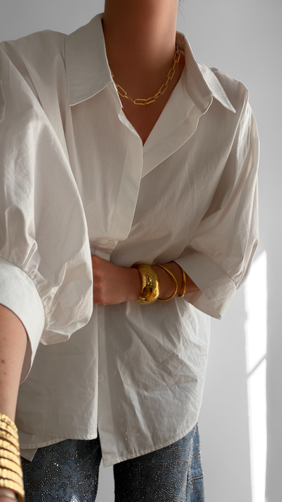 La chemise Juliette séduit par son allure épurée et contemporaine. Sa coupe ample et légèrement oversize offre un tombé fluide et structuré, idéal pour une silhouette moderne et effortless. Son col classique et sa fermeture boutonnée discrète apportent une touche intemporelle, tandis que ses manches larges subtilement retroussées accentuent son style minimaliste et élégant.