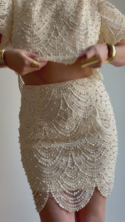 La jupe Pearl est une jupe courte en effet dentelle, délicatement décorée de jolies perles sur l’avant pour un effet élégant et raffiné.